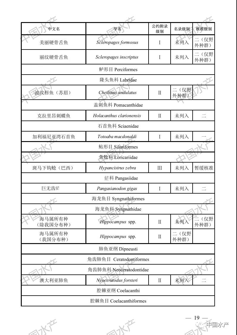 农业农村部调整《濒危野生动植物种国际贸易公约附录水生物种核准为国家重点保护野生动物名录》