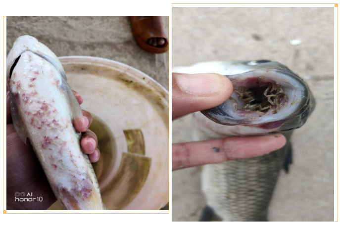 表现症状:食欲减退,身体发黑,鱼苗瘦小,腹部膨大,游泳无力。危害5cm左右的草鱼苗子。